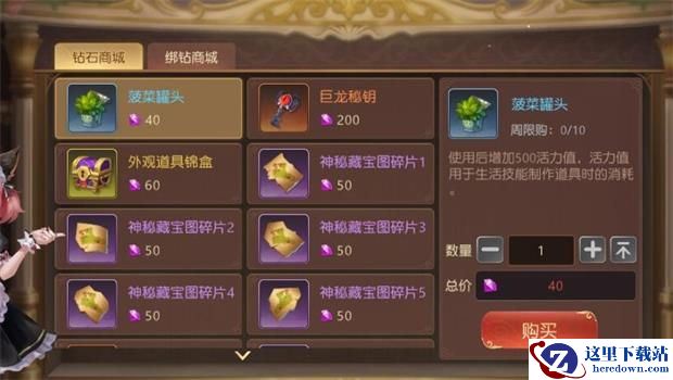 1、首先,钻石数量充足的,可以直接到游戏的商城当中直接购买碧蓝矿石。商城每隔一段时间就会刷新道具,只需要花费一定的时间进行观察即可。一旦出现了碧蓝矿石,就可以直接进行购买。
