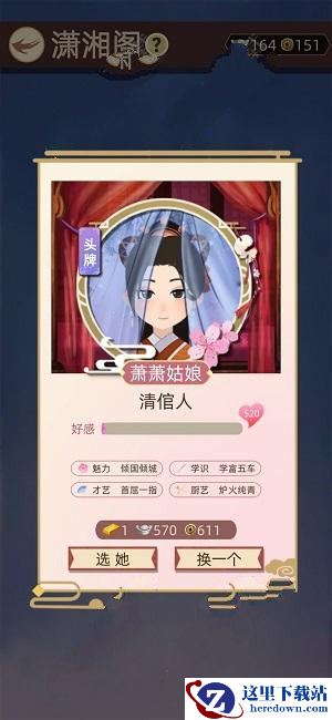 3、在潇湘阁界面玩家可以通过消耗一定的金钱进行翻牌,翻牌后可以看到牌子后面的姑娘面容,选择一个自己喜欢的姑娘点击;