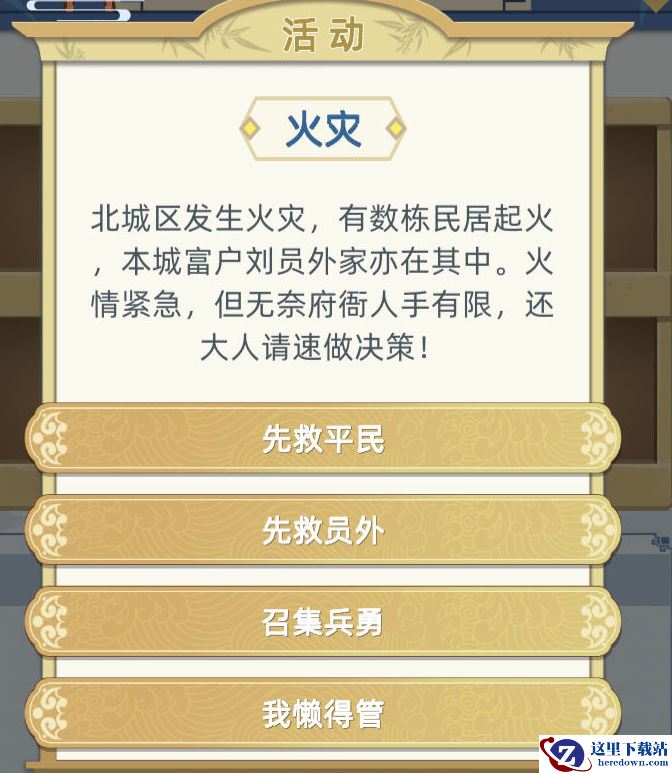 《古代人生》每一年都会有事件发生,其中有一个事件为火灾,北城区发生火灾,我们该怎么选呢,接下来就让小编给大家带来《古代人生》事件活动火灾选择攻略。