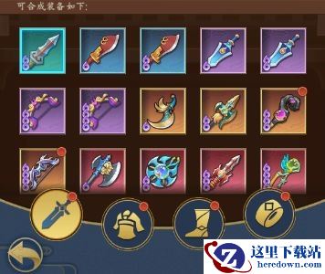 武器、衣服、鞋子、饰品四个基础装备槽,集齐下位三件可花费铜钱升级更高星级的装备,如:3件紫色一星可合成1件紫色二星装备