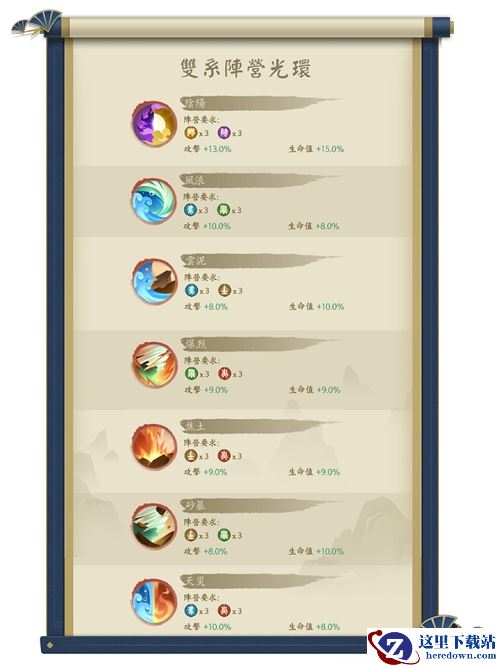 根据同属性英雄上阵的数量,对应不同的属性加成。玩家可以根据自己拥有的英雄来组成不同的阵容,增加阵容的各项属性。