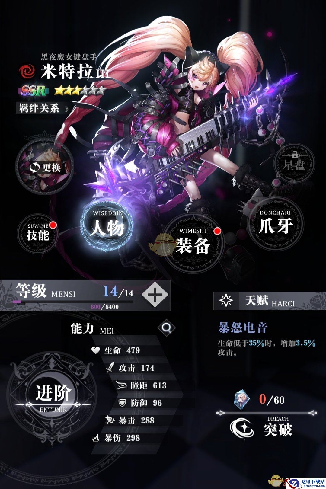 黑夜魔女键盘手米特拉的必杀伤害也比较一般,但是穿透伤害,在清小怪还是很给力的,输出大部分主要看平砍跟踪弹幕,适合走暴击路线。