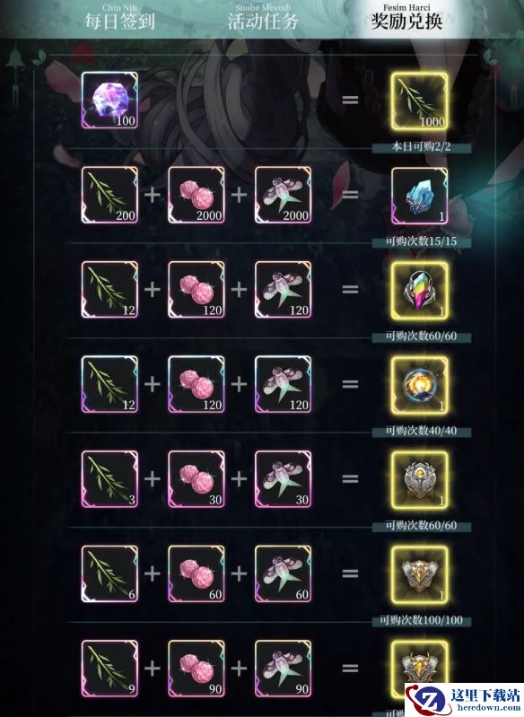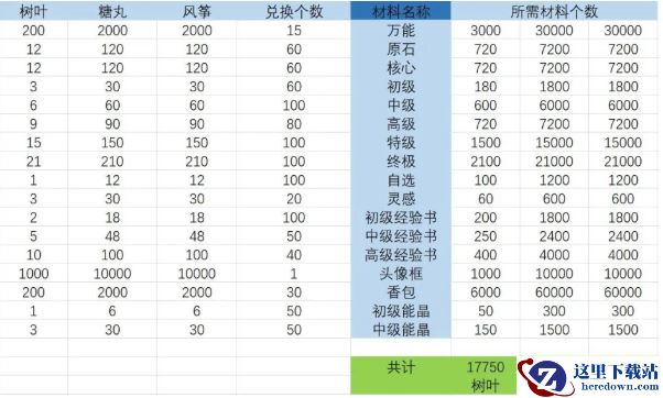 本次活动兑换的物品跟之前的活动一样,只是兑换材料的种类增加了。下面我就用树叶,糖丸和风筝来对应兑换材料,方便大家一一对应。