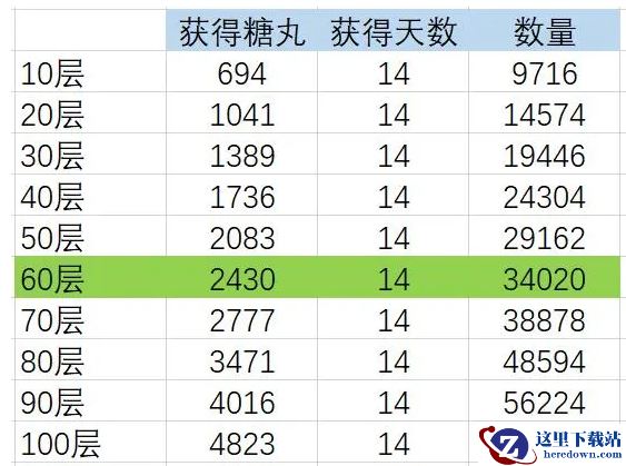 从上表可以看出,想补充上33200的糖丸的缺口,至少要打满60层,才能满足材料需求。