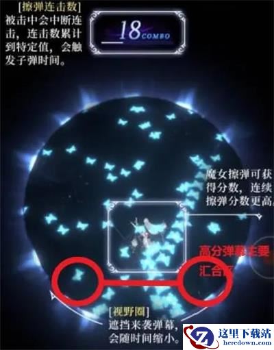 擦弹:擦弹顾名思义,魔女闪避子弹时恰好躲过,擦着身子闪过。魔女擦弹会获得分数。