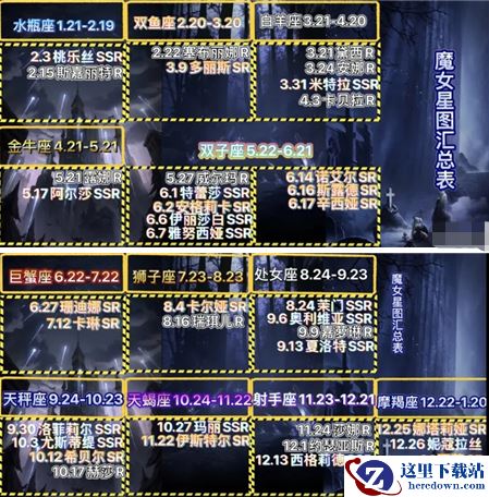 虽然目前只有四个魔女解锁了星图,但是按照官方说的,同星座的魔女也会在之后开启星图,所以想升的最物超所值,就可以参考一下,图上同星座还有哪些魔女比较喜欢