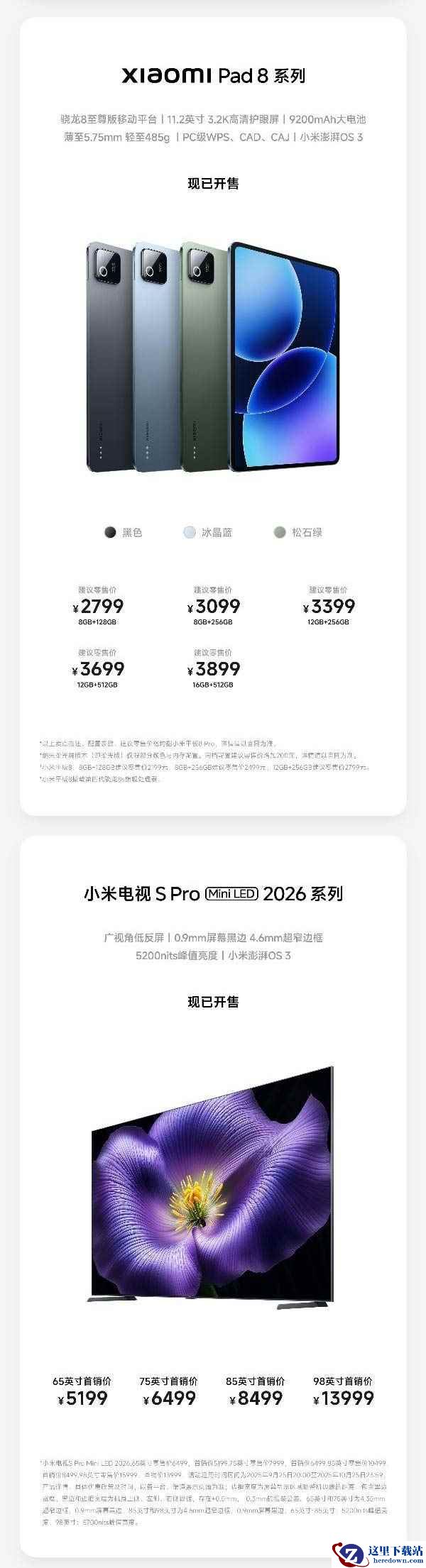 65英寸首销价5199元75英寸首销价6499元85英寸首销价8499元98英寸首销价13999元米家分区洗衣机Pro滚筒10kg