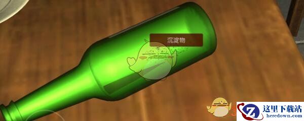 沉淀物:位于餐馆左边从上往下数第1张桌子上的啤酒瓶,需要对啤酒瓶使用放大镜。