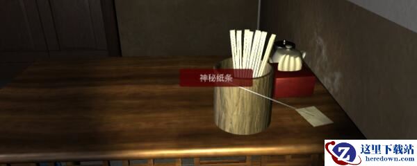 神秘纸条:位于餐馆左边靠近大门的那张桌子,移开筷筒就可以获得。