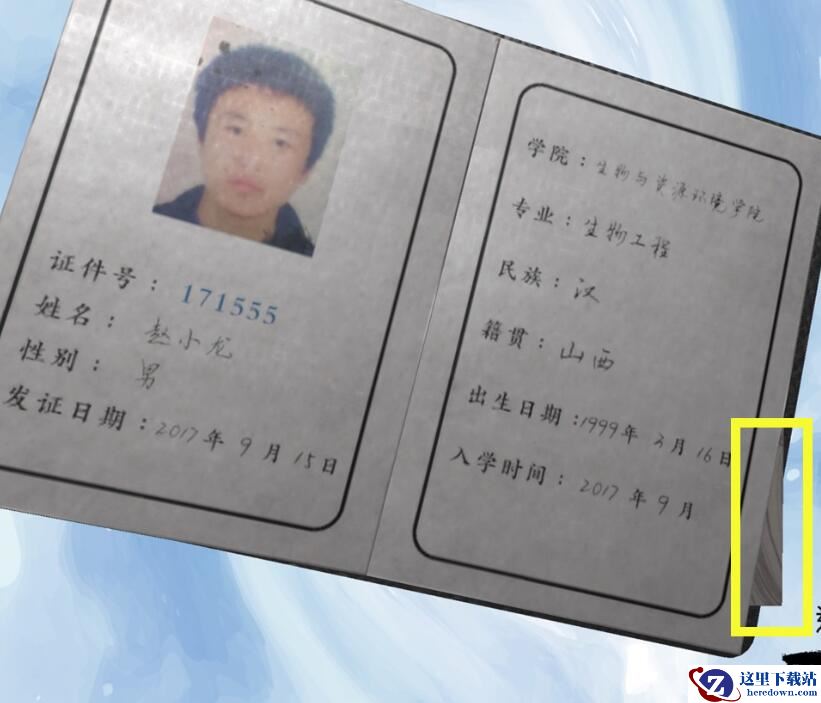 一张合影:找到线索【学生证】后,点击线索下方的眼睛查看,在学生证右下角有张照片