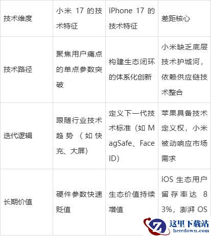 小米 17 在硬件参数上实现了对 iPhone 17 的局部超越,但在芯片自研、系统架构、算法积淀等核心技术领域仍存在 2-3 年的代差。这种差距并非 “参数堆砌” 能弥补,而是苹果数十年技术体系化建设的必然结果。小米要真正实现技术对等,需从 “供应链整合者” 转向 “底层规则制定者”。