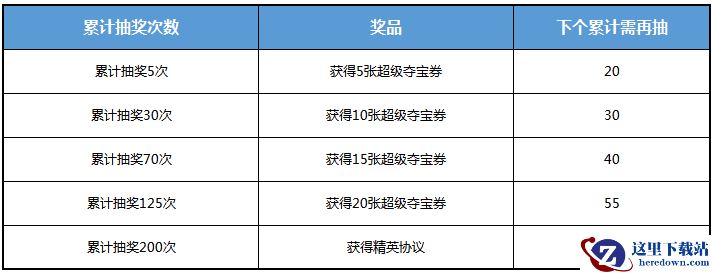 在进入夺宝道具讲解前,我们先来看看关于抽奖的福利筹码加倍活动,指挥官们在达到一定的抽奖次数后可获得相应的奖品,助力抽到大奖。