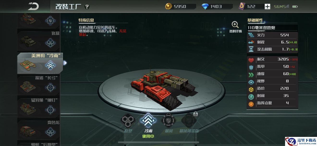 1、冷雨的特点可以从特殊信息略知一二,以机动性见长的战车,但为了机动性,取消了架起,注定了冷雨的不平凡。