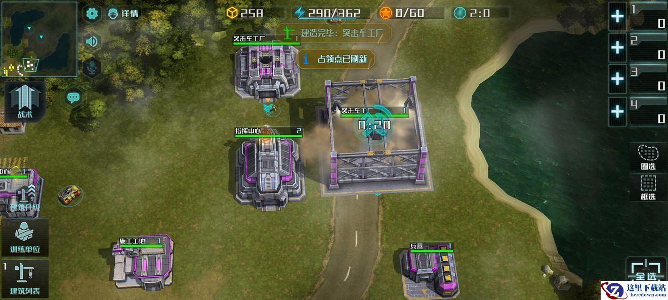 在第一个占领点刷新时,升到二本摆下两个突击车工厂。
