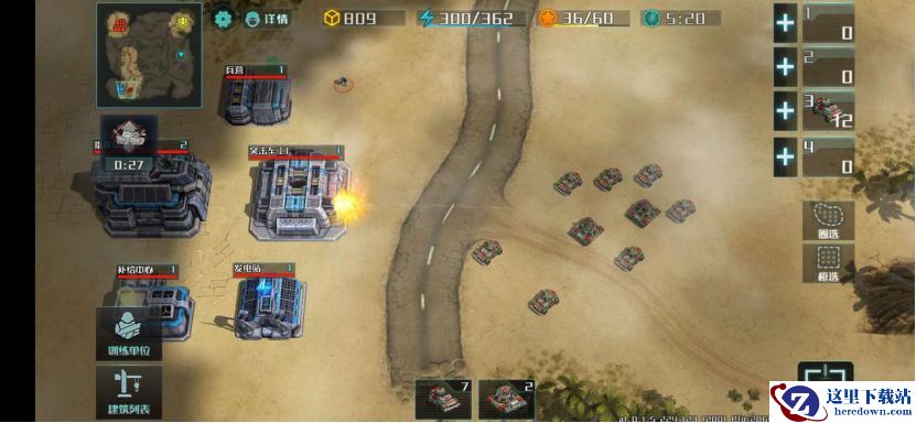特种车工厂升级完毕后,使用战车生产战术来加速生产战车单位,上文介绍过战车生产这个战术可以缩短所有正在生产中战车单位的建造时间,有2-3个工厂在生产战车时战术使用效率会极大的增加,可以获得战车数量的巨大提升,此时可以选中所有战车单位向敌方基地发起进攻,在遭遇敌方单位时,迅速开启战车攻击形成火力压制。