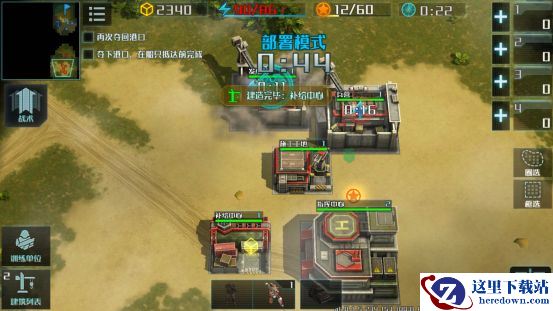 本局通关玩法:前期派遣系统所给的所有兵力前往地图上方占领,后方家中建造突击车工厂和兵营,因为是部署模式所以建造速度很快(最好都升级到二级)。占领后生产兵力全力护送运输车便可成功过关。(注意不要让任何一辆运输车损坏,因此兵力最好都排到运输车前方)