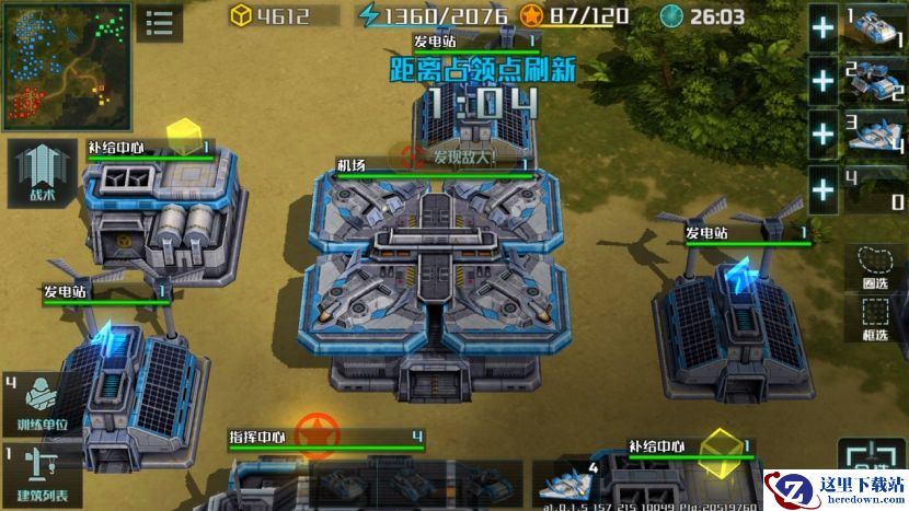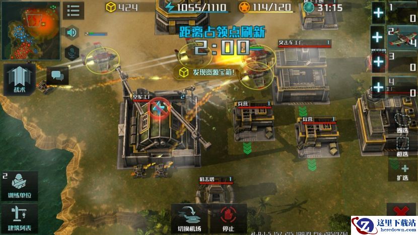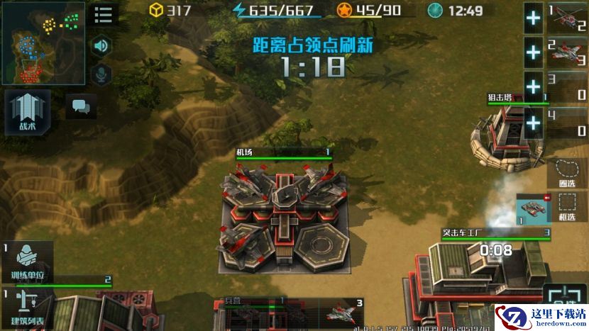 众所周知,所有的飞机都是出自空军工厂,而二级指挥部才可建造而出,所以前期是不会产生飞机机动部队的。通过前期的一系列争夺资源获得资源点,迅速升级指挥部后建造空军工厂,一级直升机要多生产,10架左右为一个方队列入右上角快捷栏中。