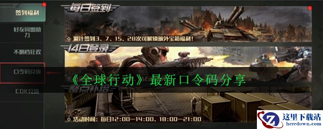 《全球行动》游戏中相信很多小伙伴都知道有个口令码,玩家输入口令码即可获得丰厚的奖励,而且啥也不干!舒舒服服,所以很多小伙伴都在寻找游戏中最新口令码, 那么接下来小编为大家带来《全球行动》最新口令码分享,一起来看看吧。