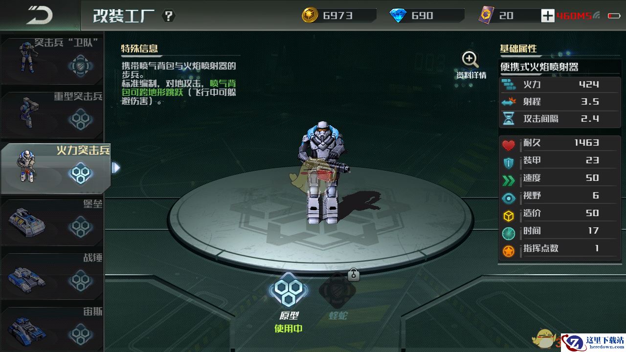 3、因为开局的发展良好,拿到第一个不给箱时,建议火力突击兵就不要在做了,当然如果玩家喜欢使用突击兵可以适当的建造一点,然后赶紧升级指挥中心,制作战车二级兵,具体请看下图。