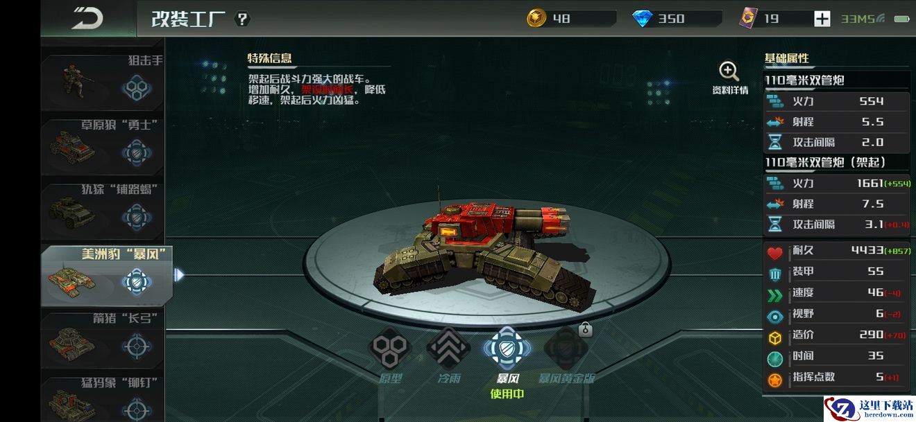 可以看到铺路蝎战车与美洲豹的性能有过之而无不及,所以在大家做战车任务的时候,大家可以前期造完突一级车的时候,后期可以直接攒铺路蝎。