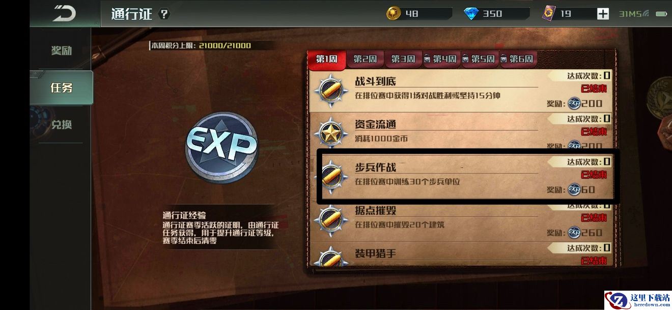 其实非常简单,就是完成通行证上的任务。首先先打开通行证,点击任务,看看你处在第几周。