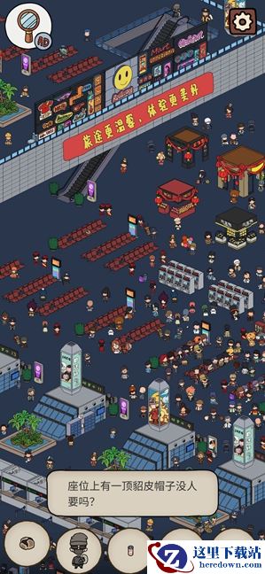 3、在地图左侧,餐饮区二楼下方的一排椅子上,其中有个椅子上放的就是貂皮帽子。