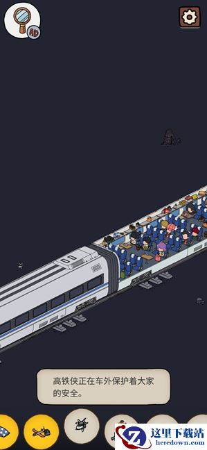3、高铁侠就在列车的左侧,大家可以把游戏屏幕缩小之后,就能很明显的看到高铁侠在列车的左侧了。