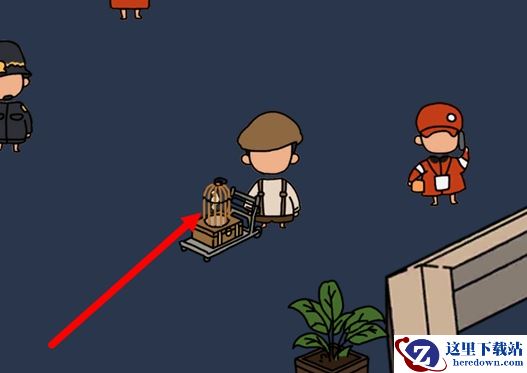 1、根据这个提示,我们可以知道旅客推着鸟笼是在信息台旁边的,信息台我们已经很熟了,所以很容易就能找到旅客在哪里。