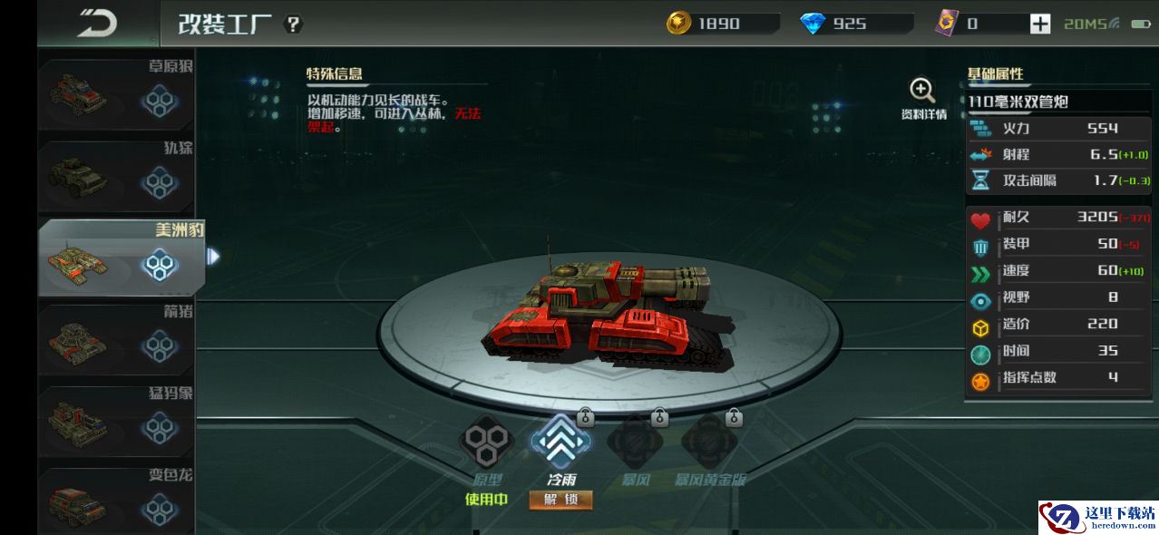 改装系统首先需要玩家到达8级后才能解锁,这也是为了避免新手过早地接触这个比较复杂的玩法。改装需要消耗对应的方案,部分方案可以通过钻石换取,而像美洲豹暴风黄金版此类稀有改装需要在超级夺宝中获得。不过别担心,更多的改装只是丰富了兵种类型,并不会出现单纯的属性强化,改装系统的目的是增添游戏的可玩性。