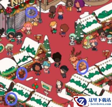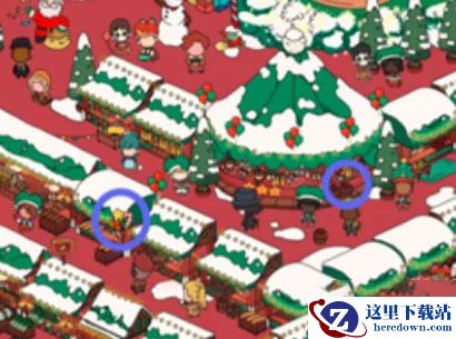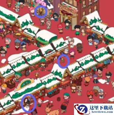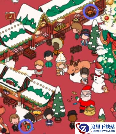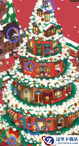 3、上方的圣诞树,中间的小鹿,左下角的海参炒饭,左侧的苹果。