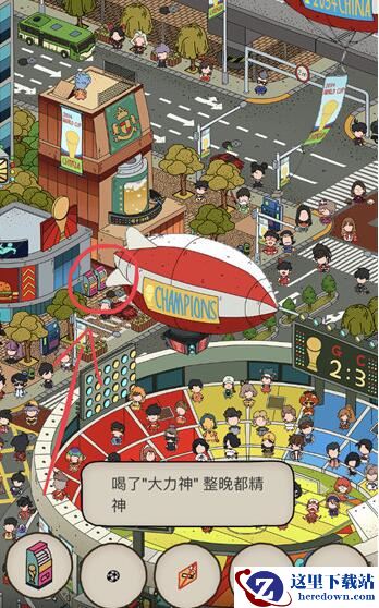 在人群中好好的看一下,就在潜水艇热气球的下方,小编已经用红色的圆圈标记出来了,大力神就在那。