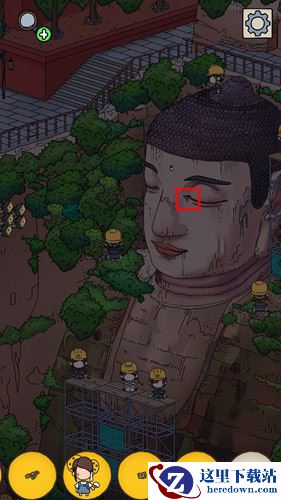 大佛眼泪只有晚上才能看到,先点击大佛额头的时光水晶进入夜晚,然后就能看到眼泪在大佛左眼眼角处,如下图: