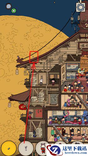 要找到玉兔,首先我们要点击塔顶尖的时光水晶进入夜晚: