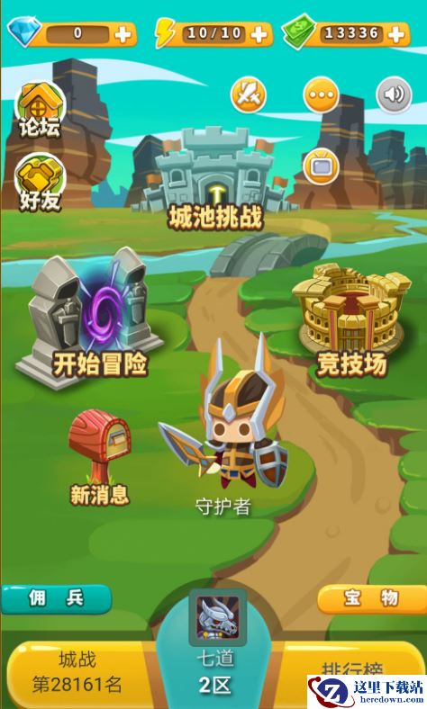 2、游戏的前期玩法主要为冒险赚劵,然后开宝物和雇佣佣兵。