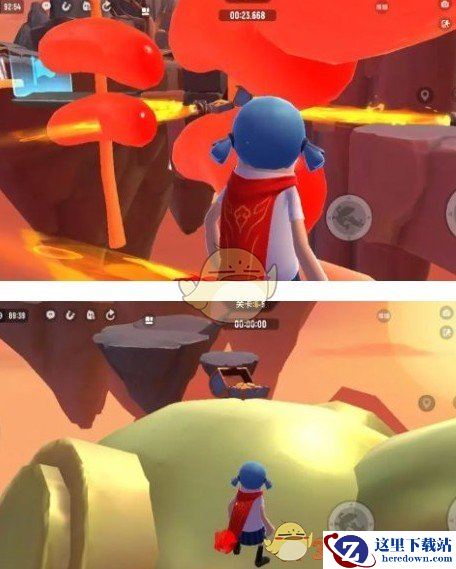 2、宝箱二:达到第一个喷火处后,只需注意别掉下去就能看到小石头上的宝箱。
