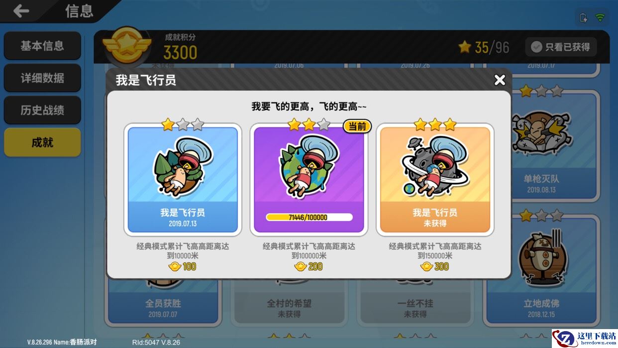 3、不用着急一口气完成成就,因为这里飞行距离是累计的,只要持之以恒(而且不怎么快的被打死,完成难度不大)