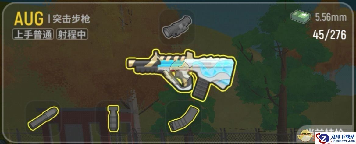 使用5.56子弹(好捡),射程近、中、远。伤害为41,爆头82,射速较快