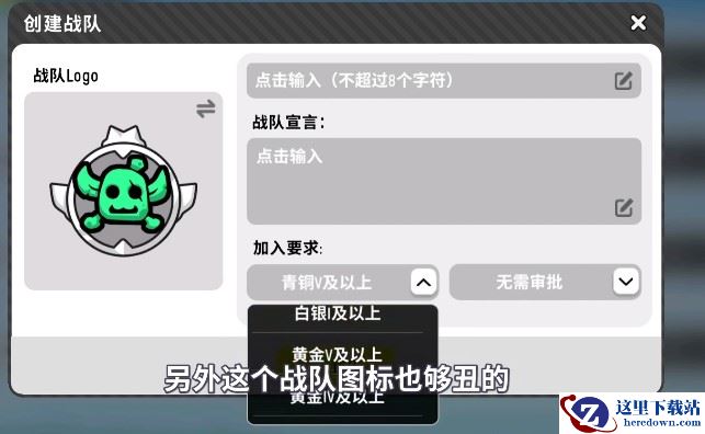 当然创建战队,可以设置logo名字,战队宣言,还有加入的要求限制等。
