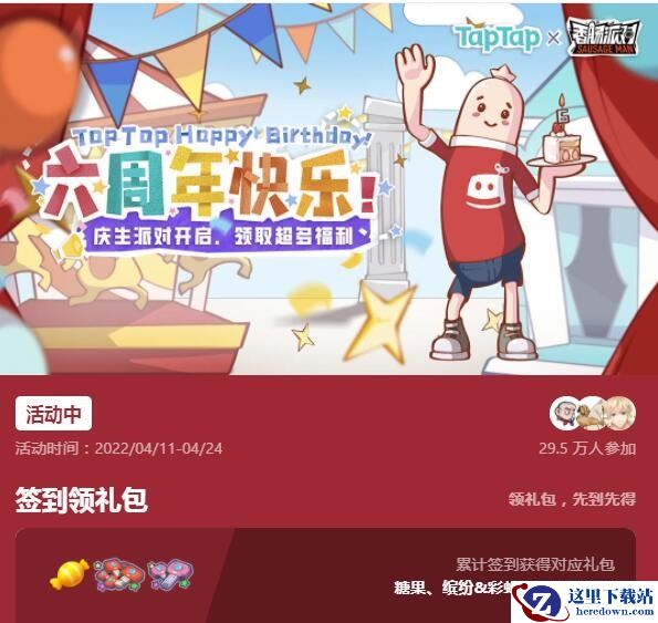以上就是小编整理带来的《香肠派对》TapTap6周年庆生签到活动入口更多精彩内容,请点击关注手游网,小编将持续为您更新!
