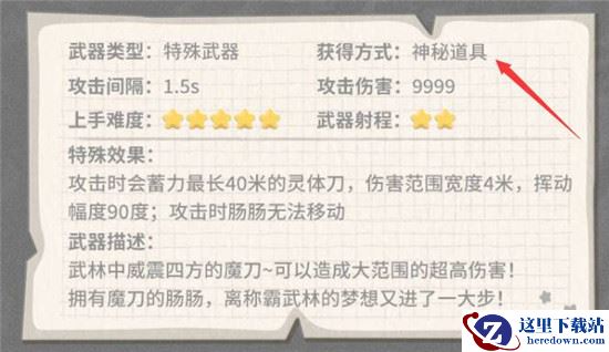 1、魔刀在游戏中属于特殊武器,获取方法是神秘道具。