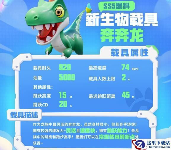 香肠派对SS5赛季生物载具奔奔龙怎么样?这是即将上线的新载具,下面是小编给大家带来的《香肠派对》SS5赛季生物载具奔奔龙属性介绍,感兴趣的小伙伴们一起来看看吧。