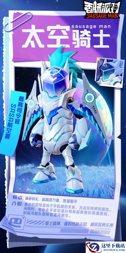 “香肠派对”是一款画风奇特的吃鸡手游,受到大量玩家好评。在这里,您将靠着 “皮” 与“阔爱”,征战百人战场,成为派对之王!香肠派对即将迎来全新的SS9赛季,而在SS9赛季中也是新增了全新的皮肤太空骑士,那么香肠派对太空骑士怎么样呢,现在就和小编一起来看看香肠派对ss9新皮肤太空骑士介绍的相关内容吧。