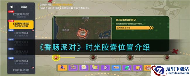 在香肠派对游戏中追忆时光胶囊活动,需要玩家在地图中寻找时光胶囊,根据线索利用好小地图上的提示,时光胶囊找起来还是比较简单的,相信很多玩家还不清楚,时光胶囊在哪里,下面就让小编给大家带来香肠派对时光胶囊位置介绍,感兴趣的小伙伴们一起来看看吧。