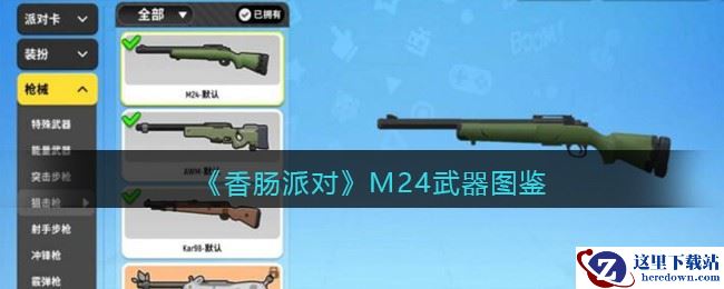 香肠派对M24在狙击枪中各项数值仅次于AWM,但是和Kar98的击倒率是一样的,不击中头部都无法直接击倒,击中头部也只能使二级头倒地;在狙击枪中伤害不如AWM,但是又不像AWM那样依赖特殊的马格南子弹,极易获得的7.62mm子弹就可以使用。接下来小编就给大家带来了《香肠派对》M24武器图鉴,想要了解武器详情的朋友速来!