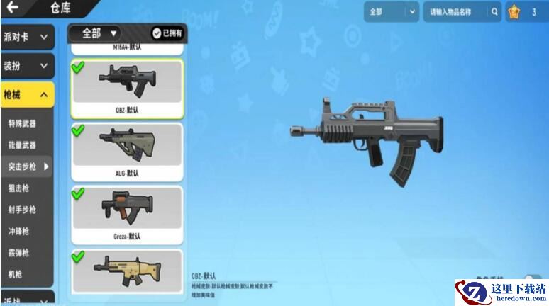QBZ是游戏《香肠派对》中的突击步枪,使用子弹5.56mm,基础容弹30发,扩充后容弹45发,可以使用除8,15倍镜外所有倍镜,基础伤害41点,有单发和自动两种开火模式,容弹量大,适合钢枪。QBZ的射速要比同类型的步枪慢一点,但是他的稳定性是所有步枪最优的一把,这使得QBZ在中距离压制敌方变得更为简单,搭配冲锋枪在近距离也是有一席之地的。接下来小编就给大家带来了《香肠派对》QBZ武器图鉴,想要了解武器详情的朋友速来!