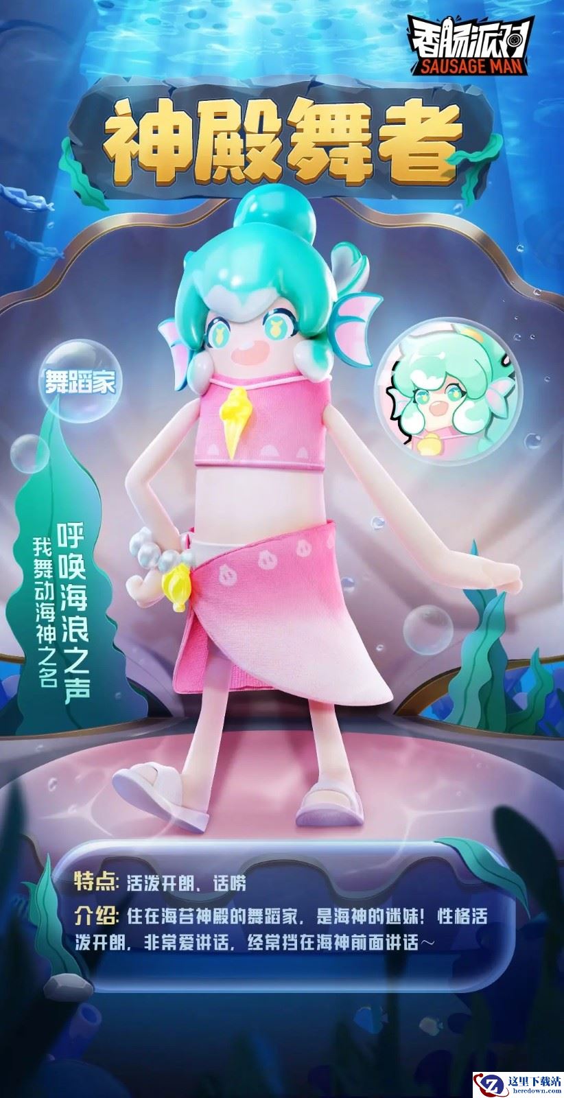 香肠派对是一款生存射击吃鸡类手游,游戏在SS10赛季中推出了许多的新皮肤套装,神殿舞者就是其中之一,香肠派对神殿舞者特点是活泼开朗,话唠,她住在海苔神殿的舞蹈家,是海神的迷妹!性格活泼开朗,非常爱讲话,经常挡在海神前面讲话。