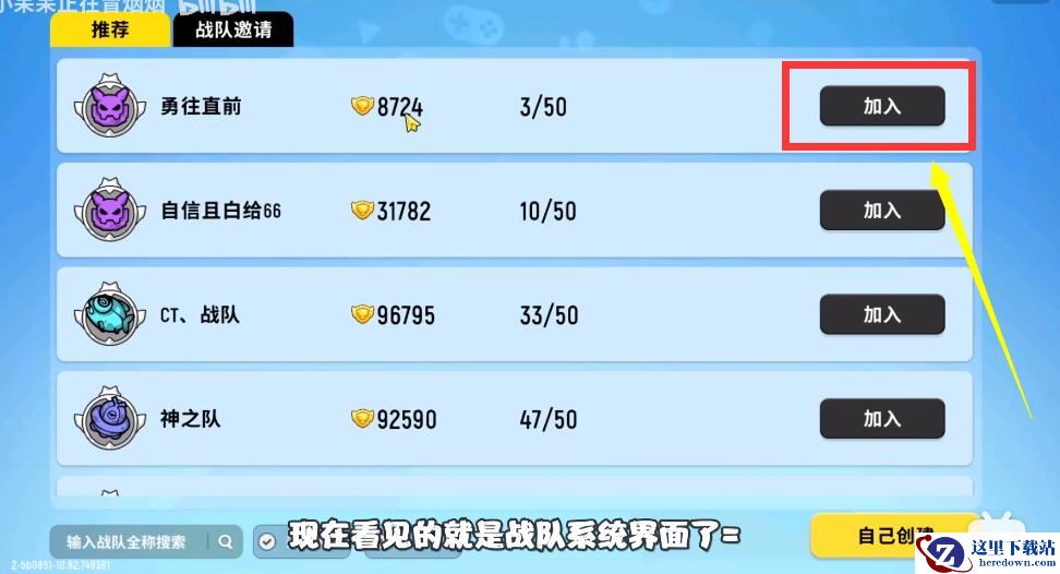 2、然后系统会向你推荐可以加入的战队,你也可以自己在下方搜索想要加的战队;