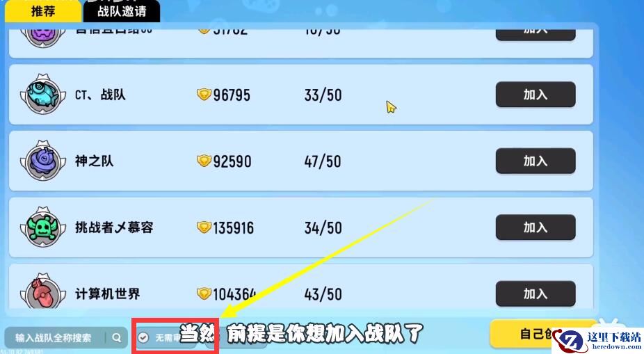 3、而且可以勾选无需审核的,这样更容易进入战队;