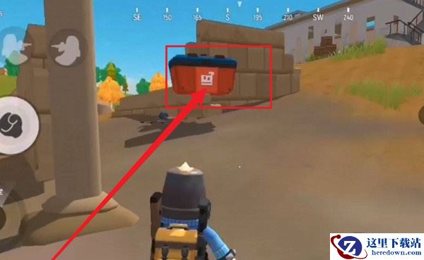 1、进入游戏,来到战场上,找到如图所示的橙色箱子,将其打开可获得科技。