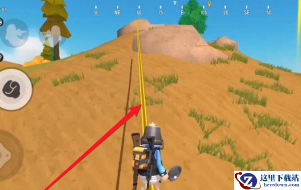 2、然后来到索道这里,使用科技将其开启。利用索道来到山顶上。